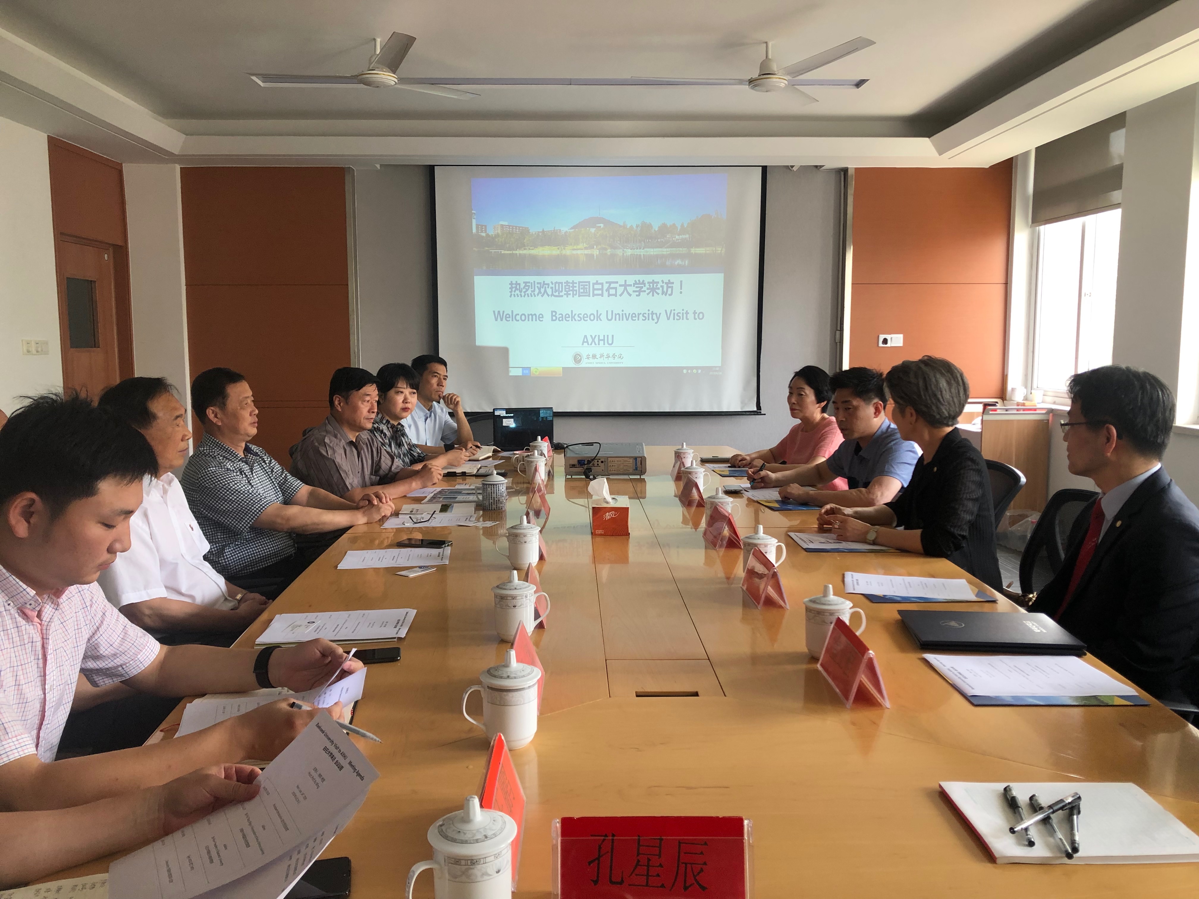 本网讯(通讯员:陈青)6月24日下午,白石大学副校长郑桢美一行5人来伟德官网交流访问。副校长杨世国、国际交流合作处处长徐鸣、教务处处长黄仿伦、艺术学院院长江河、文化与传播学院副院长吕翔,接待了韩国白石大学一行,并展开了交流访问座谈会,本次座谈会由徐鸣主持。