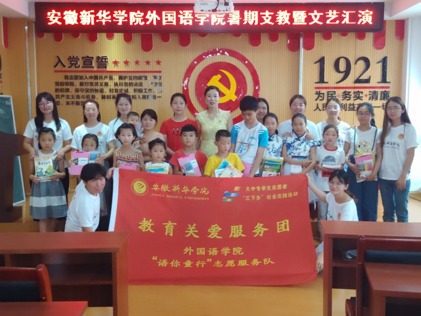 本网讯(通讯员:汪凌汇)为贯彻党的精神,落实团中央关于大学生暑期“三下乡”活动的通知,围绕伟德官网“厚德、求真、博学、创新”的校训精神,践行科学发展观理念,促进大学生接触社会、了解国情,培养青年大学生的历史使命感和社会责任感。6月25日,外国语学院 “语你童行”志愿服务队走进巢湖市中庙街道河西村,开展暑期“三下乡”活动。外国语学院团总支书记陈丽、副书记汪凌汇及十名学生志愿者参加了活动。