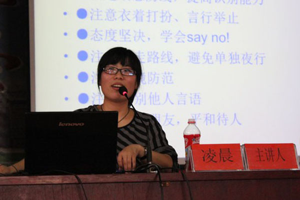下午的女生讲座从生理和心理两个方面展开,以加强女生对自我生理的认识及健康的卫生习惯的培养、提高自我保护能力为重点。凌晨老师从学习生活环境的变化、大学生心理特征及适应问题、大学生心理调适方法、大学生情感问题及心理学考研问题五个方面和同学们做了交流。讲座还增设了互动环节,女生们踊跃发言,现场气氛活泼而又温馨,每一位发言的女生都得到了一份精美的小礼物,讲座气氛被推至高潮。