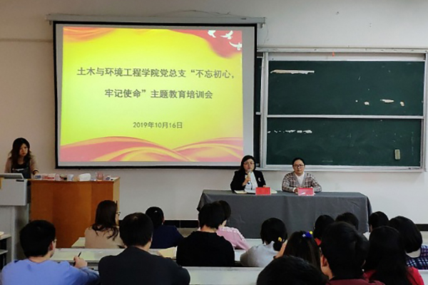 本网讯(通讯员:张斯媛)10月16日中午,为深入学习贯彻习近平总书记关于“不忘初心、牢记使命”主题教育的重要讲话和重要指示精神,土木与环境工程学院党总支在教一316开展“不忘初心,牢记使命”主题教育集中学习。党总支书记邵玲、党总支纪检委员宋红玲主讲,全体教师党员、学生党员参与学习。本次集中学习由党总支组织员张斯媛主持。