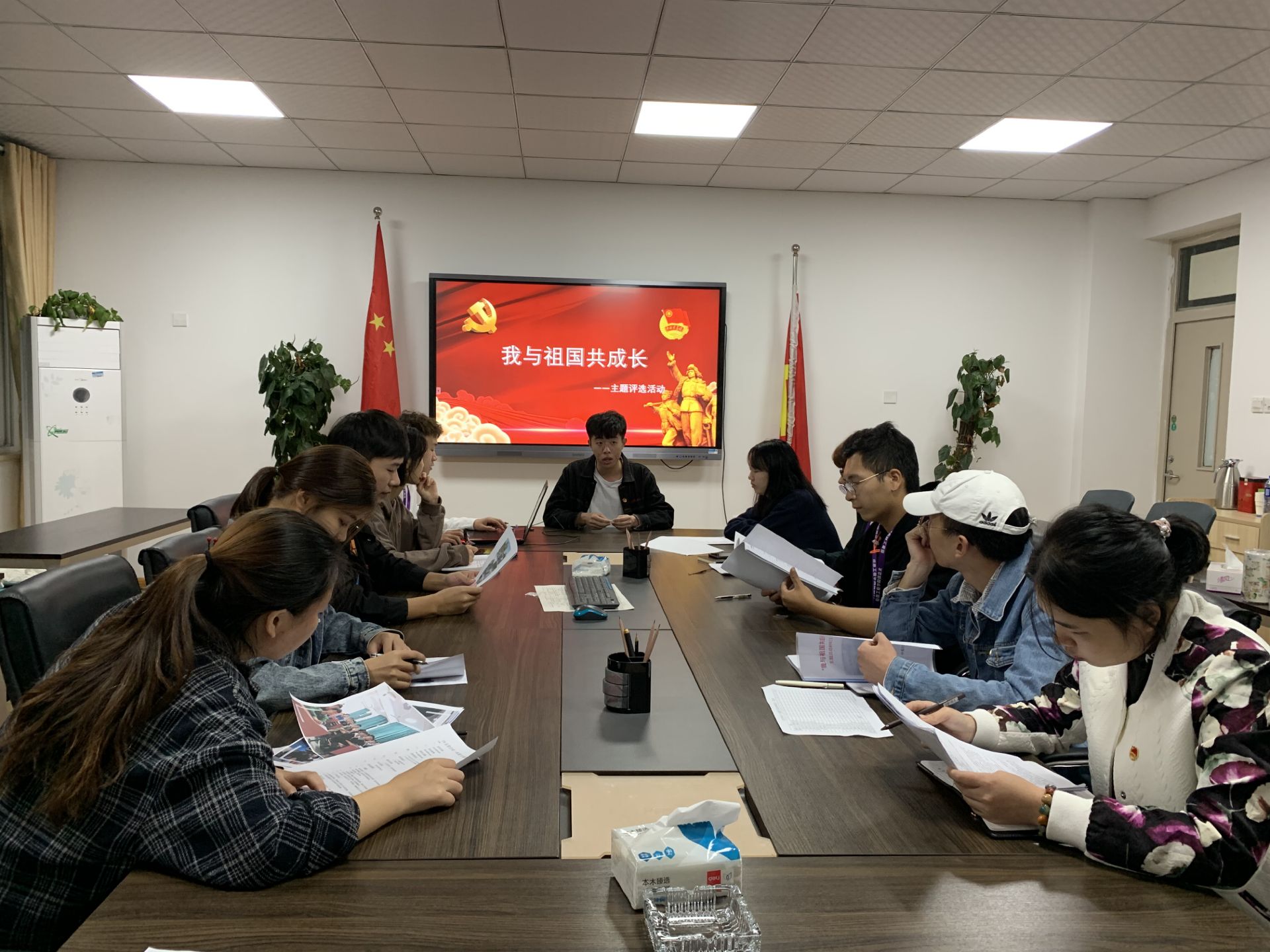 活动前期,团总支副书记陈润洲召开了班级团支书会议。会议对“我与祖国共成长”主题团日活动进行了部署,会议要求班级团支部应围绕“不忘初心,牢记使命”主题教育开展活动。班级各支部以观看红色电影、参观烈士陵园及博物馆、拍摄主题宣传视频等形式,积极响应团总支的号召,在实践中不断传承红色基因,弘扬爱国主义精神。开展过程中,团总支还带领新生班级团支部开展了“我与祖国共成长”——“歌唱我和我的祖国”、“我对祖国有话说”系列活动,并结合宣传视频进行思想引领。