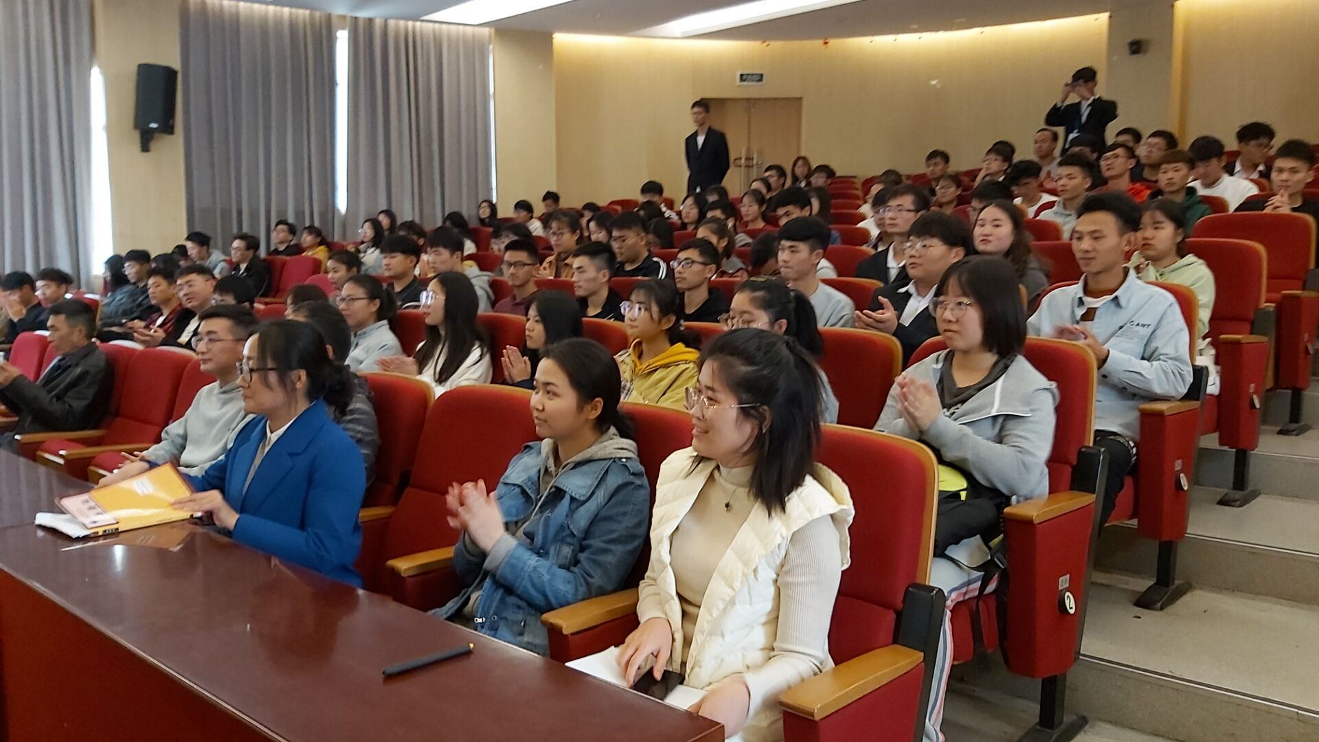 俞士毛首先介绍了学风建设月的活动背景,他指出学风建设是各大高校必抓且常抓的工作,学校的学风体现出一个学校的办学水平。同时他还介绍了本次学风建设月的主要内容,一是升学及职业生涯指导系列讲座,二是学科竞赛月系列活动。万家华就学科竞赛月系列活动内容进行了详细介绍,他指出学科竞赛是第二课堂的重要内容,是推动学院学风建设的重要举措,也是应用型人才培养的内在要求,良好竞赛环境是学风建设的具体体现。随后2018—2019学年国家奖学金获得者卢仁龙同学作为学生代表宣读了学风建设活动月倡议书,他号召全体同学“优良学风,从我做起”,让自己真正成为学风建设工作的宣传者,跨行者,受益者。