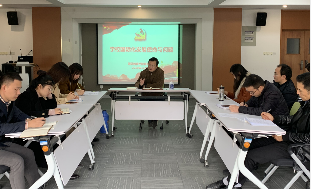 本网讯(通讯员:周倩)为推进“不忘初心 牢记使命”主题教育深入开展,11月18日中午,国际教育学院直属党支部组织开展形势政策教育。支部特邀执行院长徐鸣以“学校国际化发展使命和问题”为主题,做形势政策专题报告会。国际教育学院、国际交流合作处全体教职工,国际教育学院直属党支部全体党员参与学习。