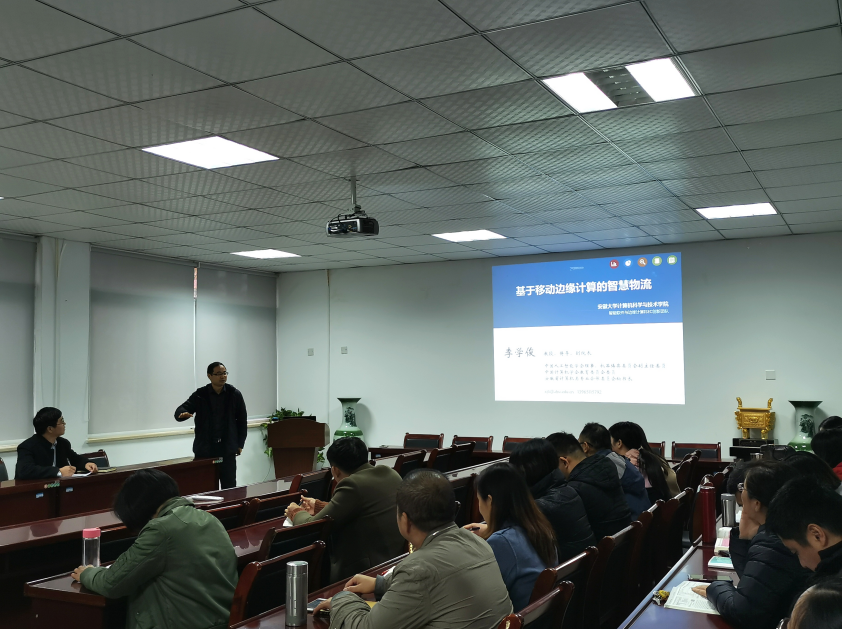 本网讯(通讯员:石文玉)11月24日下午安徽大学计算机学院教授李学俊应邀来我院做了题为“基于移动边缘计算的智慧物流”的报告。报告由信息工程学院副院长万家华主持,信息工程学院教职员工及计算机科学与技术专业学生参加了本次讲座。