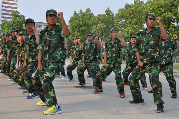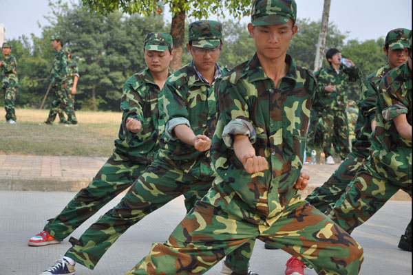 军姿、齐步、正步、方阵是每天必备课程,不管骄阳似火还是风吹雨打,他们始终都在操场上坚持如一。20多天的训练效果明显。军训场地上,口号声似雷鸣,阵阵响彻华园;动作整齐,集万人如一人行;歌声嘹亮,气吞山河。严明的纪律,严格的要求,紧张的节奏,辛苦的训练,使得每一个参加军训的学生从暑假里松散的生活方式转向有规律、有强度的军训之中,也使他们真正体会到何为“军人”。