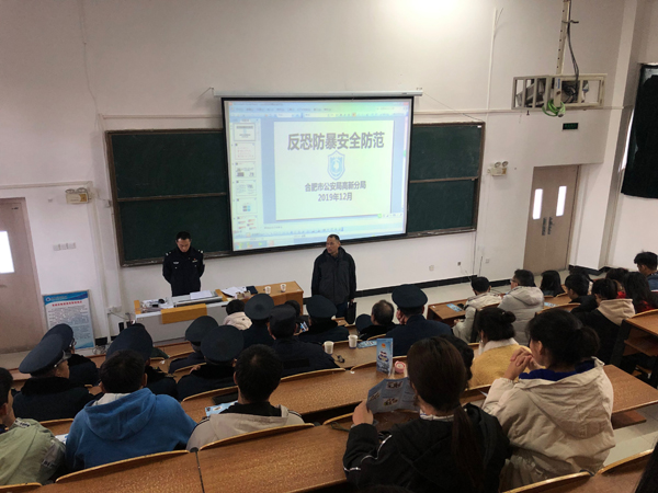 本网讯(通讯员:张迎)2019年12月4日下午,伟德官网在商学院218多媒体教室举行了“反恐反暴,安全防范”校园安全防暴反恐知识讲座,特邀合肥市高新分局警官李伟授课,学院保卫处全体人员、护校队和消防志愿者大队部分骨干参加此次活动。李伟详细的介绍了什么是恐怖主义、如何识别恐怖袭击行为,列举了近年来发生的一些实例,最后还重点讲解了在高校校园遇到暴恐袭击怎么办以及如何抵制恐怖主义思想传播。