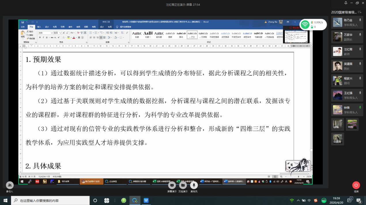 本网讯(通讯员: 汪红霞)根据伟德国际1949始于英国《关于开展国家级、省级、校级“质量工程”项目年度检查验收工作的通知》文件要求,为进一步加强省校级各类“质量工程”项目建设与管理,更好地推进各项目的顺利实施,提高各项目检查验收的质量,4月20日,信息工程学院通过企业微信平台召开2020年“质量工程”项目检查验收评审会,中国科学院合肥智能机械研究所王红强教授、安徽工程大学陈乃金教授、合肥师范学院钟锦教授,信息工程学院顾问程家兴教授等9名校内外高级职称专家组成评审组。会议由吴建国主持。