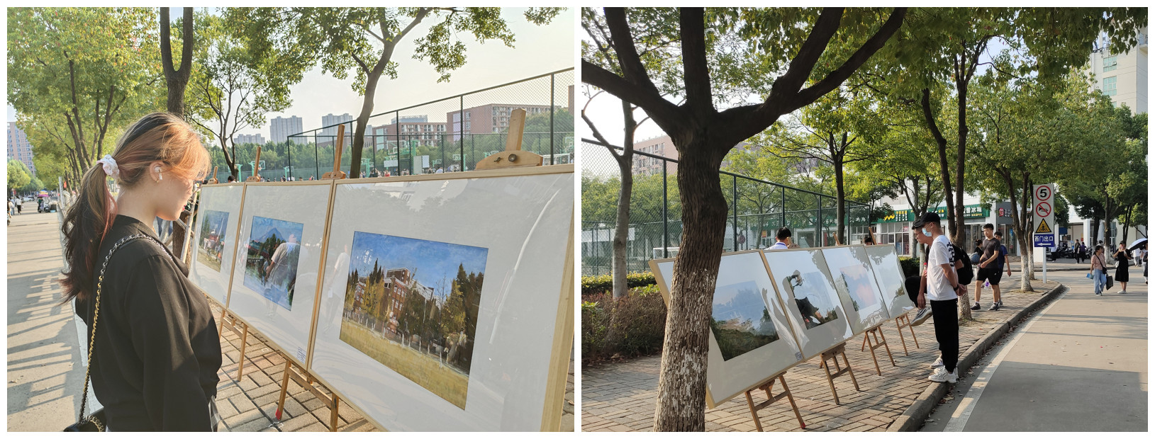 黄坤老师指导的新华实景画展前,人头攒动,吸引不少家长和新生驻足观看。学生作品呈现出一幅幅华园美景,搭起华园与新生和家长之间零距离沟通的桥梁。报到处新生班辅导员开通了2020级新生班级群,新生家长群等,通过线上、线下多种渠道随时随地解答新生和家长关于学业、生活、就业等各方面的问题,与新生及家长建立起良好的关系,营造出了温馨的迎新氛围。