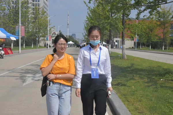 正式的迎新很快来临,新生们开始报到。郑梦竹一直来往于帐篷点与院内,为新生们提供真诚贴心的服务,得到了新生及家长们的一致认可。