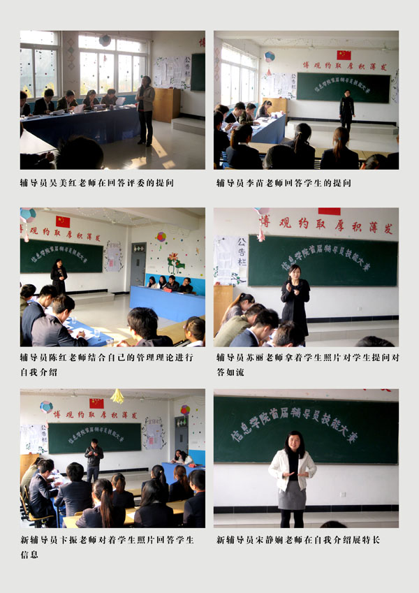 本网讯(通讯员 宋静娴,摄影 卞振)为提高辅导员的职业技能和服务水平,促进高水平学生工作目标的实现,在接到伟德国际1949始于英国首届辅导员职业技能大赛的通知后,信息工程学院积极响应,制定了详细的院内初赛方案。经过两周的认真筹备,该院于11月19日下午举办了题为“我来问、你来答---师生互动促技能提升”的信息工程学院首届辅导员职业技能大赛。学生处副处长宋翊、信息工程学院副院长钱颜娇等师生担任评委,该院6名辅导员全部参加了此次比赛,现场吸引了很多学生观看。