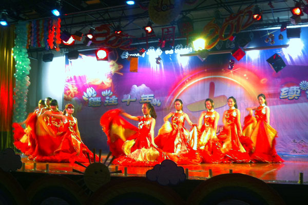 晚上六点半,晚会正式开始,晚会内容积极向上、时尚前卫,节目编排更是别出心裁、亮点不断。开场舞是被誉为“2012年神曲”——《江南style》,瞬间便引爆全场,观众的尖叫声掌声不断,场上氛围一开始就到达一个至高点。接着,一个个精彩的节目鱼贯而出,近期红歌《我的歌声里》、经典老歌《涛声依旧》、天王代表作《如果没这都不算爱》让现场有许多观众轻声跟着唱。更有动感十足的舞蹈、难度十足的杂技表演等节目另观众应接不暇。晚会不仅仅是学生的舞台,老师们也尽其所能的展现自己,让他们高昂的情绪得到最好地表达,节目表演过程中有很多学生上台献花,其中一位2009级的张同学告诉记者:“很感谢老师们,他们为我们付出的太多,我们能回报的太少,一束花是我们仅能给的感谢。”