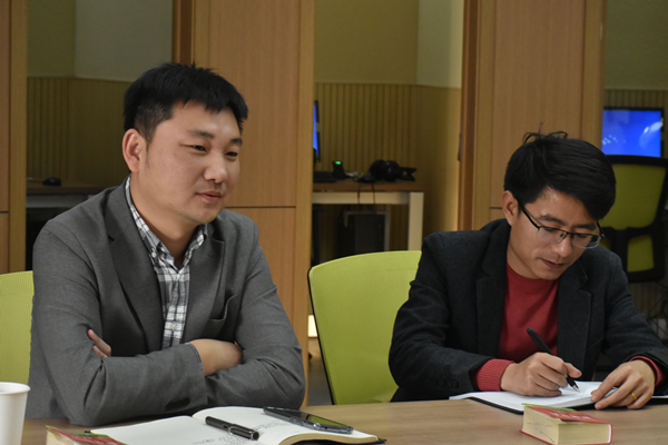 首先,吕翔向各调研组成员系统地介绍了普通话测试站的基本设施,同时展示了学生进行普通话测试的相关流程。调研组成员对普通话测试站提出“积极组织、及时修调、合理分配”三点意见并对测试过程中的注意事项进行了专业指导。随后,吕翔与调研组成员在普通话测试等候室进行工作交流,单明强调:“学校的普通话测试工作要按照统一要求,突出‘严肃考纪,规范有序’,强化考试流程,保证考试做到公平公正。”随即,吕翔表示:“在测试前,学校会召开工作会对考试工作人员岗位职责进行进一步明确,同时对测试设施进行及时检查,确保所有工作按照国家规定的测试程序进行。”