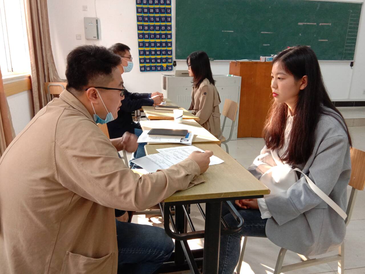 招聘会正式开始之前,毕业班辅导员对毕业生的简历,着装等方面进行了现场指导,和学生们融洽的讨论在招聘时遇到的问题,强调了在招聘时要严格谨慎,选择适合自己的岗位。各公司负责人通过悬挂海报、发宣传单页向学生们介绍公司的概况、职业发展方向、人员需求等,毕业生在了解公司详情后纷纷投递简历,对个人发展前景等方面提出期望,并咨询了合同签订的相关事宜。用人单位与毕业生一一详谈,询问毕业生的在校情况、学习进展、实践能力等方面。