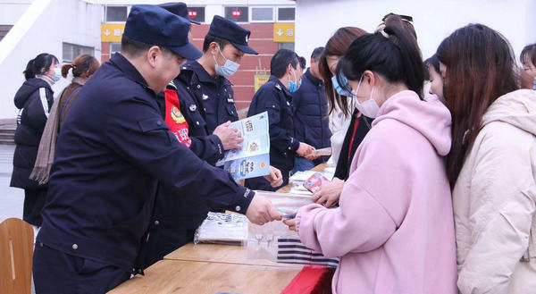 活动现场悬挂有“依法打击恐怖犯罪 坚决维护社会稳定”宣传横幅,摆放反恐知识展板。高新分局的民警们向师生讲解了反恐防控、避险自救的相关知识并发放反恐防范宣传单页,回答现场师生的咨询。