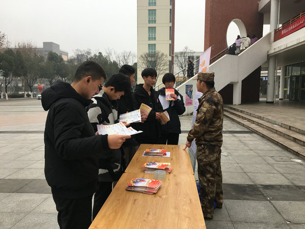 活动中,武装部工作人员向前来咨询的学生介绍报名程序、网上操作办法,并对今年的应征入伍条件、征兵流程、体检和政治条件、优抚政策及退伍后享受待遇等大家普遍关注的话题做了详细解读。现场发放宣传资料200余份。