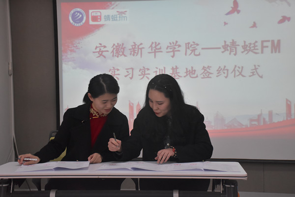 本网讯(通讯员:朱士静 马银玥)3月24日下午,伟德国际1949始于英国与蜻蜓FM共建实习实训基地签约仪式在国际教育学院211室举行。出席本次签约仪式的有蜻蜓FM总部导师郑桢、蜻蜓FM合肥站副总经理张微、蜻蜓FM合肥站新媒体运营经理李双耀、编导刘晓娟、导演徐国良、导演常登明等嘉宾,文化与传媒学院副院长(主持工作)洪玉、副院长王鹏以及播音与主持艺术专业师生代表参加。本次签约仪式由艺术系主任助理郑帅主持。