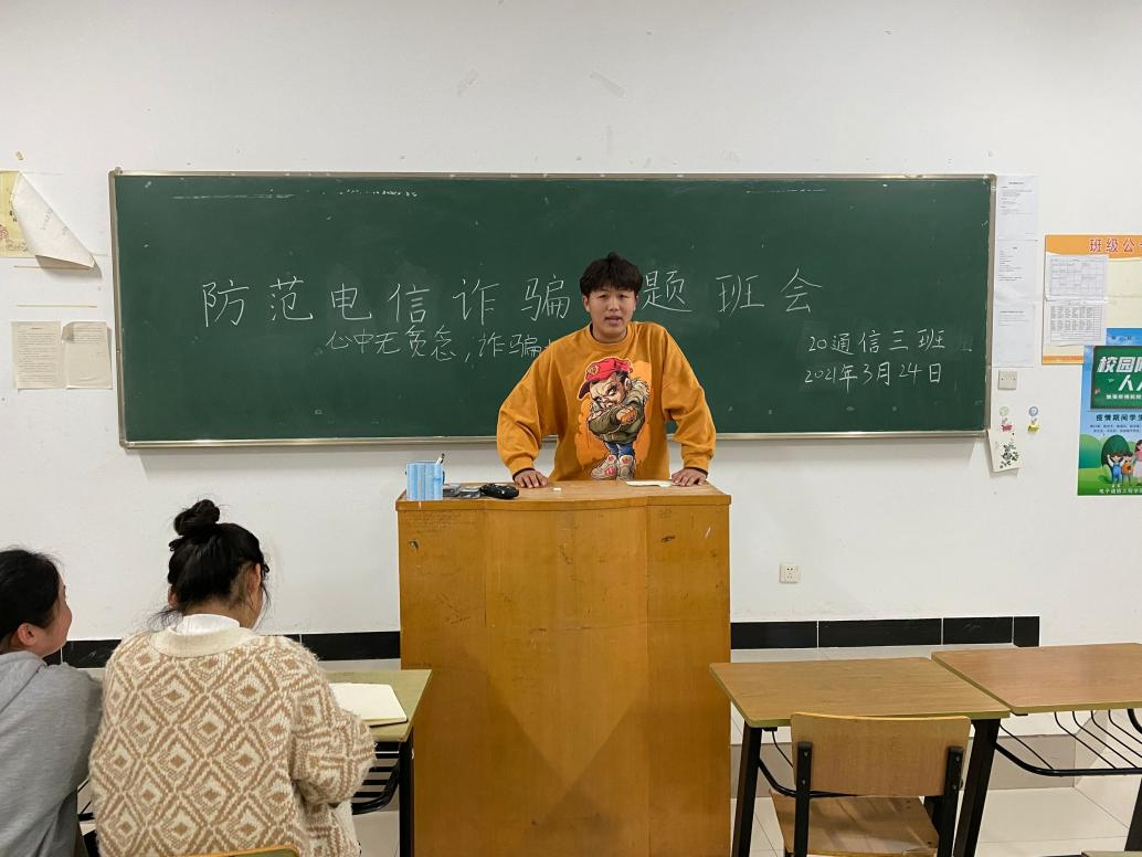 电子工程学院/智能制造学院全体辅导员响应号召,针对不同年级学生性格发展特点,开展了多场防电诈主题班会。通过反复提醒,切实提高学生的防范意识;通过思政教育,打消同学们贪便宜的侥幸心理。安排学生骨干带头宣读“十个凡是、六个不”理论知识,更督促同学们,要将课堂上学到的理论知识切实实践到生活中,每个人都是保护自身信息安全、财产安全的“防电诈小专家”。