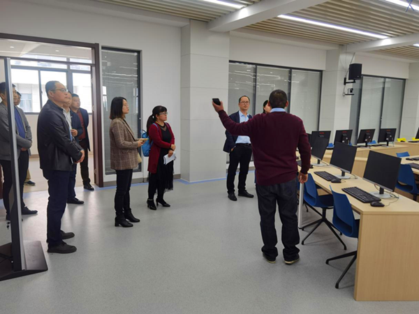 3月25日下午,考察组来到了安徽科技学院,校教务处处长俞浩、管理学院党委书记丁景良、管理学院院长赵伟峰、管理学院副院长张国宝、管理学院副院长郑谦、管理学院实验室主任杨续昌热情接待了伟德官网考察组。首先,在交流会上,俞浩对考察组一行人表示热烈的欢迎,双方就一流课程建设、实验室建设、考研情况、职业技能、安全教育等工作进行了点对点的深入交流与讨论。随后,在赵伟峰陪同下,考察组一行人重点考察了该校经管综合实训室、企管模拟实验室、财会模拟实验室等。参观中张国宝详细介绍了实验室建设的的基本情况及建设思路,与对方就实验室建设展开深入交流。