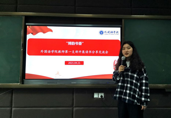 本网讯(通讯员:王娟)“腹有诗书气自华,最是书香能致远”,为营造良好的读书氛围,形成良好的读书风气,丰富学校的校园文化,根据外国语学院读书工程的实施方案,4月21日中午,外国语学院教师第一支部在206教室举办“博韵书香”专题分享活动。此项读书交流活动旨在通过交流分享师生在阅读中对书籍的感悟来调动同学们的读书热情,培养同学们爱读书的好习惯,让同学们在活动中体会到读书交流的乐趣。