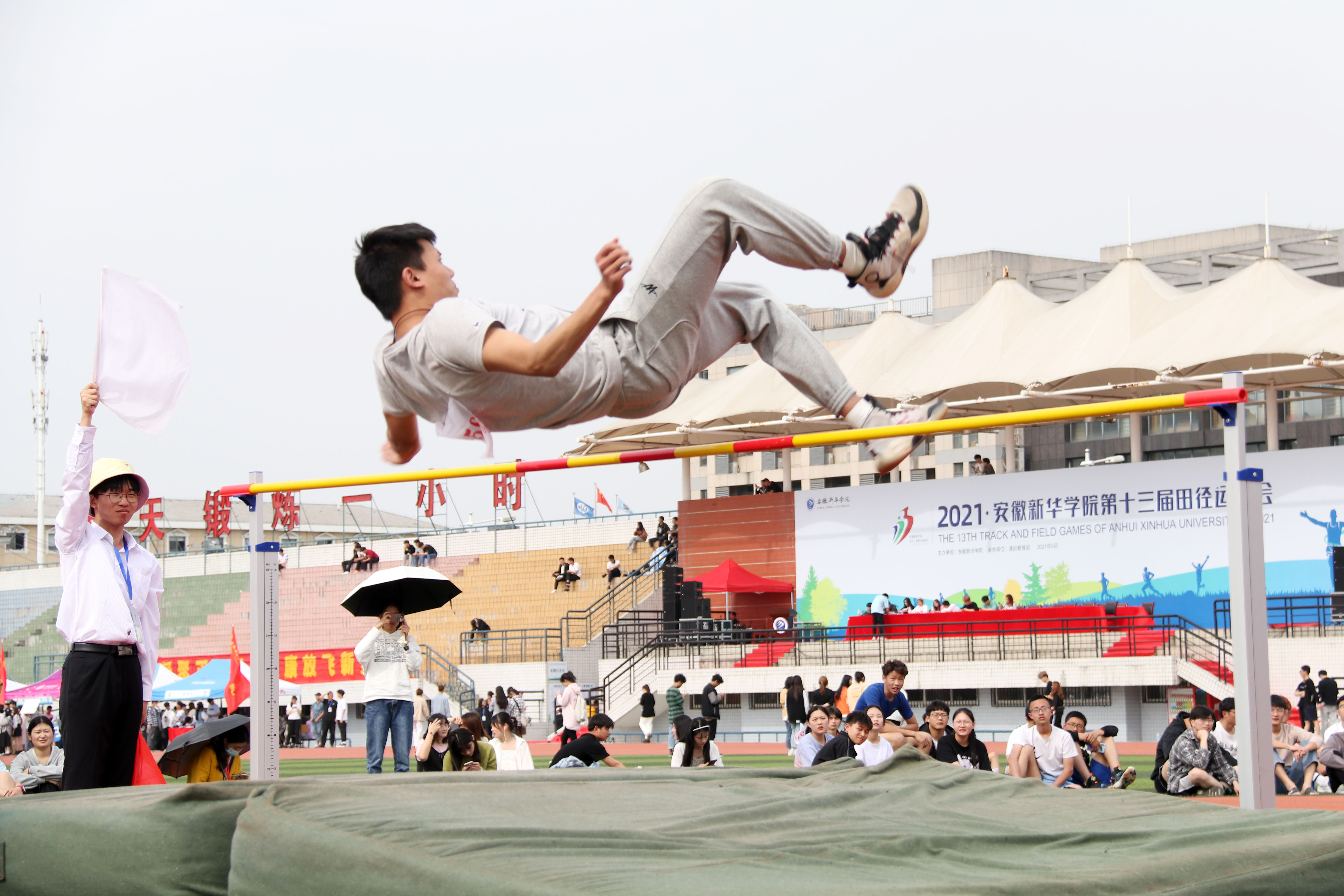 跳高这场比赛对于他来说不仅仅是技术的较量,更是体力的较量,在参加跳高比赛之前,他刚从三级跳的赛场赶来,已经进行了二轮三级跳,跳了六跳。此时的体力和心力已在三级跳中磨损了不少,稍大的体力消耗和紧绷的心理状态让他有点支撑不住了。最后一跳了,一个漂亮的背跃。