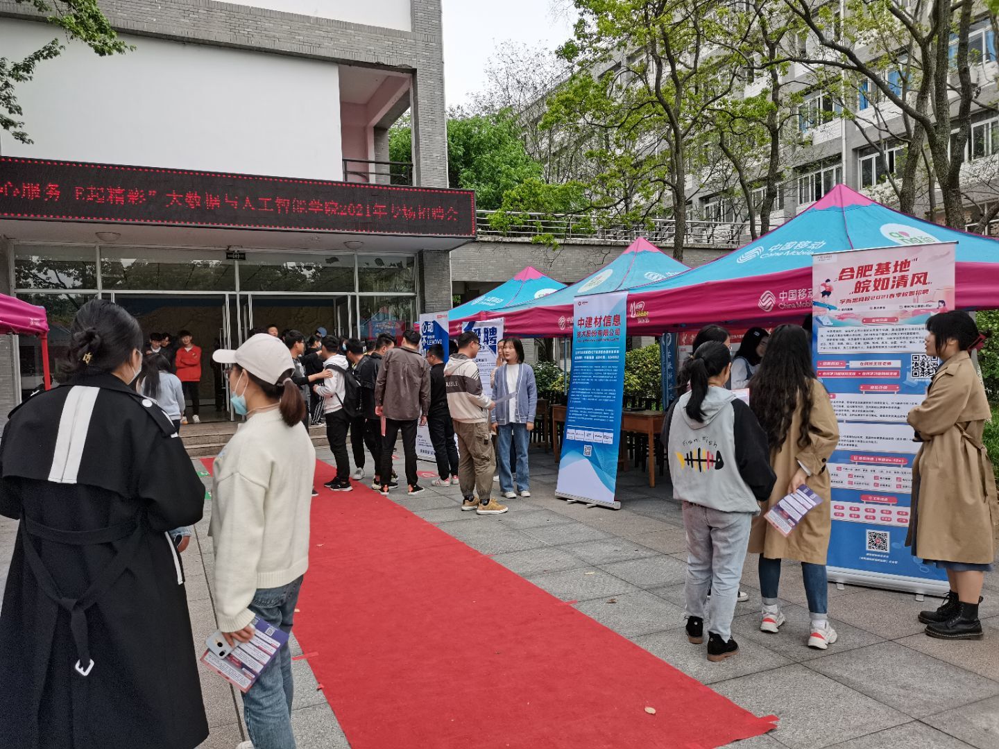 本网讯(通讯员:张韬 程思美)为切实做好毕业生就业工作,为广大毕业生提供良好的发展平台和与用人单位接触的机会。4月27日下午,大数据与人工智能学院整合资源,在教学楼前举办了 “暖心服务 E起精彩”2021年专场招聘会。本次招聘会共邀请了十二家企业单位,现场提供就业岗位100余个。