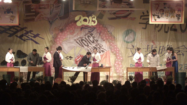 伴随着一场动漫人物大乱斗的Cosplay表演中,晚会正式拉开了序幕。动漫人物逼真的造型以及绚丽的服装让全场观众在开场就迎来了第一次小高潮。随后,动漫学院副院长朱诵贵为晚会致开幕词,“回首2012年,动漫学院取得了硕果累累;展望2013年,动漫学院还要再创辉煌。”激情昂扬的话语,不仅肯定了在过去一年里动漫学院取得的成绩,更点燃了动漫学子的热情,掌声此起彼伏。最后,朱诵贵还为动漫学院的全体师生送上了新年祝福。