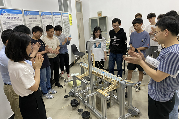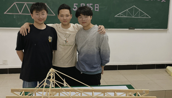 在模型加载过程中同学们亲手制作的结构模型得以充分检验,即便部分模型未顺利通过三级加载,但在整个参赛过程中同学们的工程创新、团队合作和实践能力得到较大提升,也通过加载找到模型的薄弱部位,反思总结结构设计过程中的可优化之处,从而深化巩固结构理论知识。