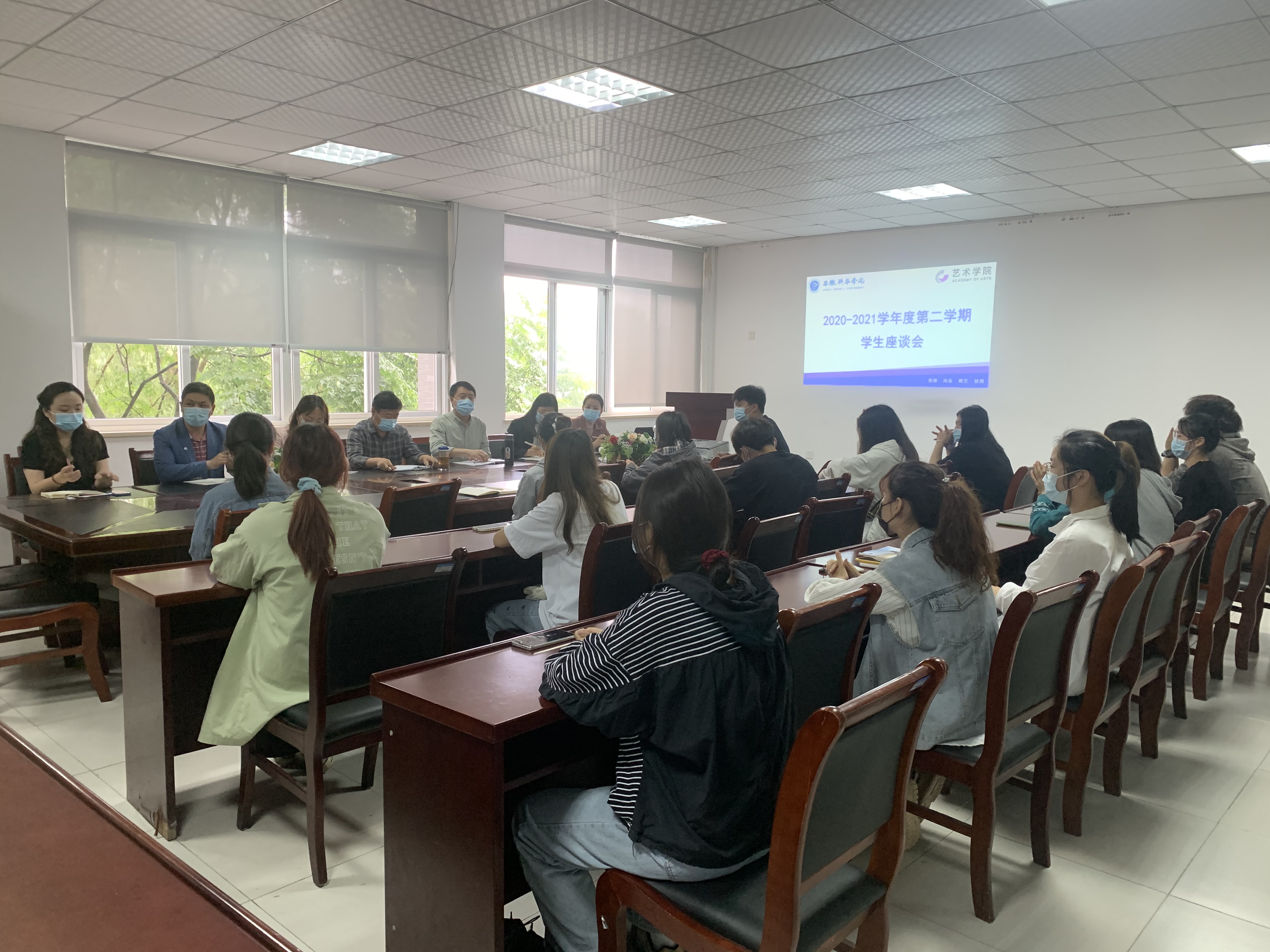 本网讯(通讯员:杨蕊)为进一步提升教学质量,了解教学中存在的问题及学生学习状态,5月19日艺术学院召开期中学生座谈会。艺术学院院长江河、院长助理刘刚、实验实训主管余新泳、教学秘书王静、学管秘书高扬、教务员梁姁及学生代表参加本次座谈会,会议由刘刚主持。
