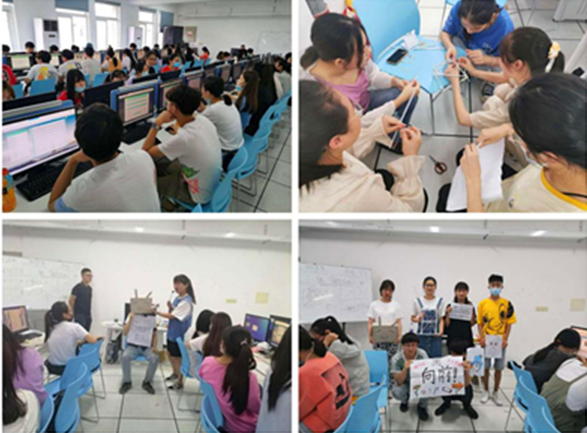 在创新创业实践方法论的指导下,创业团队根据问题、移情、定义、创意、原型、展示五步法,设计出“找书机器人”、五彩学士帽等创新实物原型,以及智能废品回收机、创意解压馆、线上VR演唱会等商业项目,各个团队依次召开产品说明会和项目路演。课堂环境通畅便利,各小组齐心协力,积极发言,在组长的带领下有序完成任务,呈现作品。