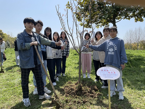 为加强新时代大学生劳动教育,培养学生树立正确劳动价值观和良好劳动品质,3月24日,作为全校实验班之一的19艺术与科技班级,带领2020级班级,以班级为名,购置了12株晚樱苗木。从树苗选购到绿地划分,从区域分割到前期设计,从植树到认养,从种植培土到日常维护,充分征询师生意见。经过近两小时的忙碌劳动,在全体师生的共同努力下,成功种下12棵樱花树。植树现场,场面火热。老师们手把手教植树小技巧,一百余名师生以十人一组,挥锹铲土、扶正树苗、填土压实、提水浇灌,道道工序细致认真、有条不紊。植树间隙,老师们还与参与植树的学生进行交流,了解他们参与劳动实践的情况。