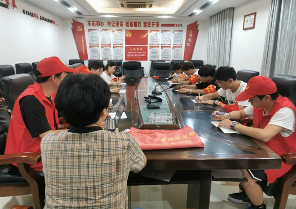 商学院“三叶草”乡村振兴志愿服务团长金保忠向西阳镇团委书记汇报本次志愿活动的基本内容和实施方案,介绍了志愿服务团的成员,并根据相关活动开展问题进行了沟通。