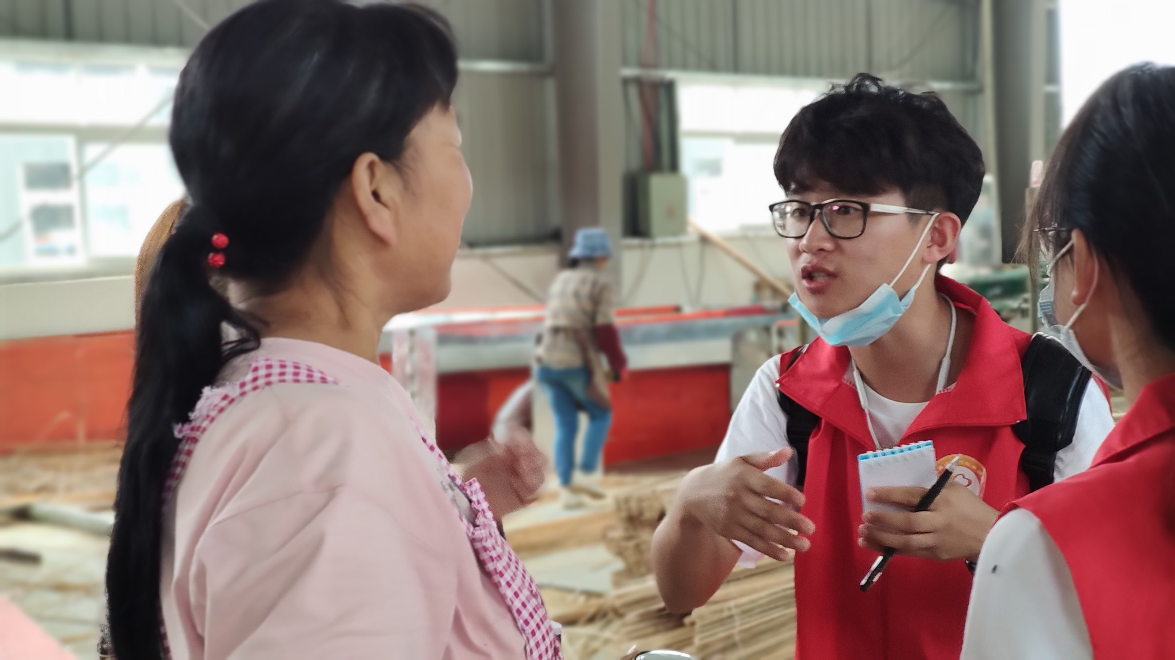 深入工厂车间,一堆堆捆绑的竹木,散发着斑竹的清香,项目负责人介绍到,这是竹木的初步加工,按照规定伐下的竹子进行粗加工,经过半自动化处理,切为相同形状的单个短竹,之后对粗加工的竹子进行蒸发,将其制成日用品,如一次性筷子的前期制品。车间作业的轰鸣声咆哮般呼叫,这是最后一步将边角料进一步完全利用的压缩机器。就工人休息的间隙,团队成员对他们进行采访。据悉,这里的农民工多数来自湖北黄冈地区,主要在麻城县,该地区考察团抵达金寨县实地考察后,组织人员前来助力金寨的工业发展,把乡村振兴落在实处,既带动当地经济发展,也提供就业岗位。