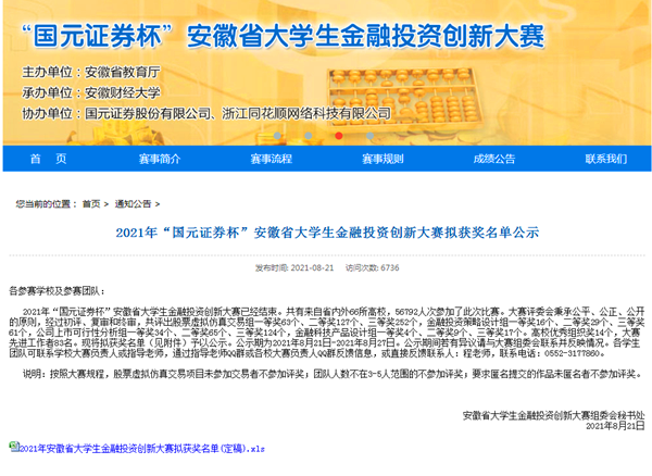喜报!伟德官网学子在第六届安徽省大学生金融投资创新大赛中再创佳绩