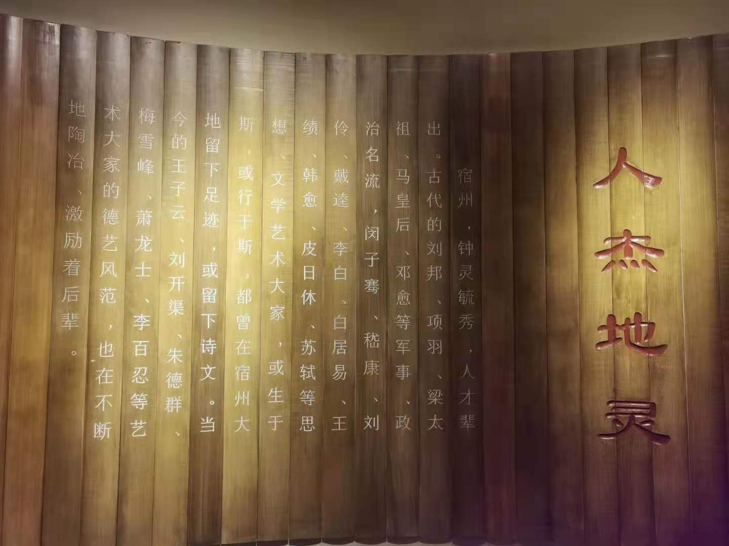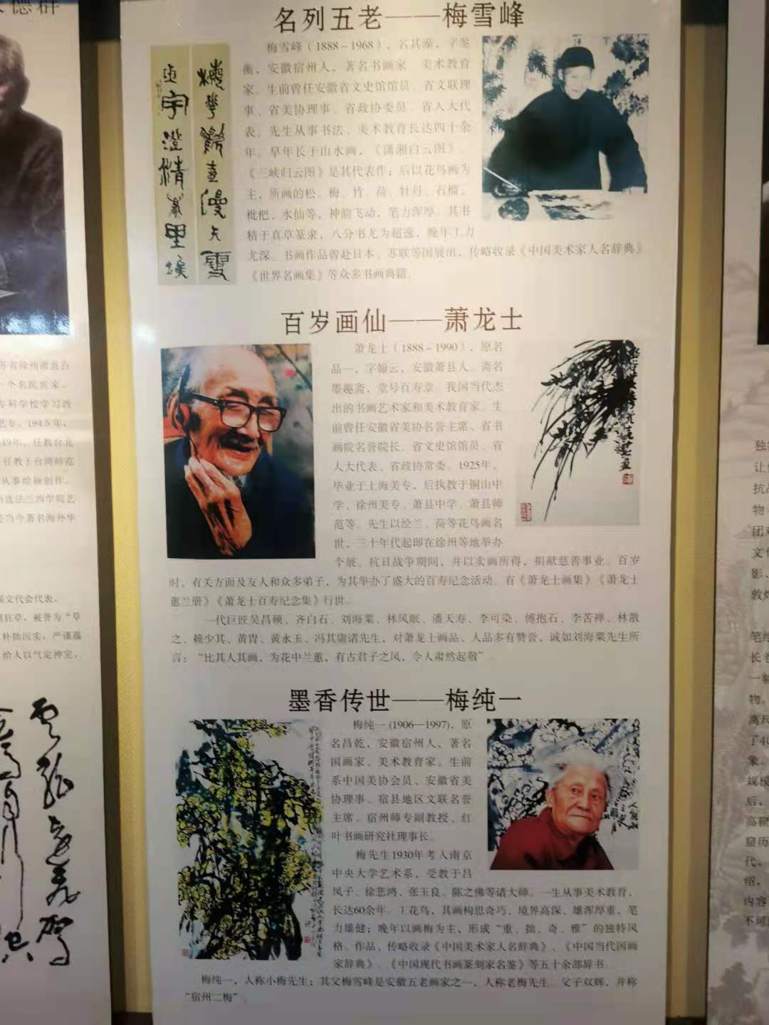 在缅怀过彭雪枫将军后,社会实践团队来到了宿州市的一个文化馆里,在这里成员们对宿州市有了不一样的了解。当地宿州,躬逢盛世,培育出一批享誉海内外的德艺双馨的艺术大家,例如:王子云、刘开渠、朱德群以及人民的好医生李月华、师者楷模孟二冬等,他们是宿州人民的骄傲,激励着后辈们不断奋发向上。