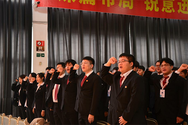 随后,新老两届主席团代表交接助理团团旗,并代领全体助理团成员宣誓。郜恩晴作为新一届成员代表发言,她从入团初衷、工作职责等方面表达了对助理团工作的理解,表示将充分利用这个温暖的组织,成就自我,服务服务学院。新一届团长陈龙发言,他表示,将在接下来的工作中努力带头,严于律己,他希望全体成员齐心协力,用热情满满的行动服务全院师生,以学院发展贡献一份坚实的力量。
