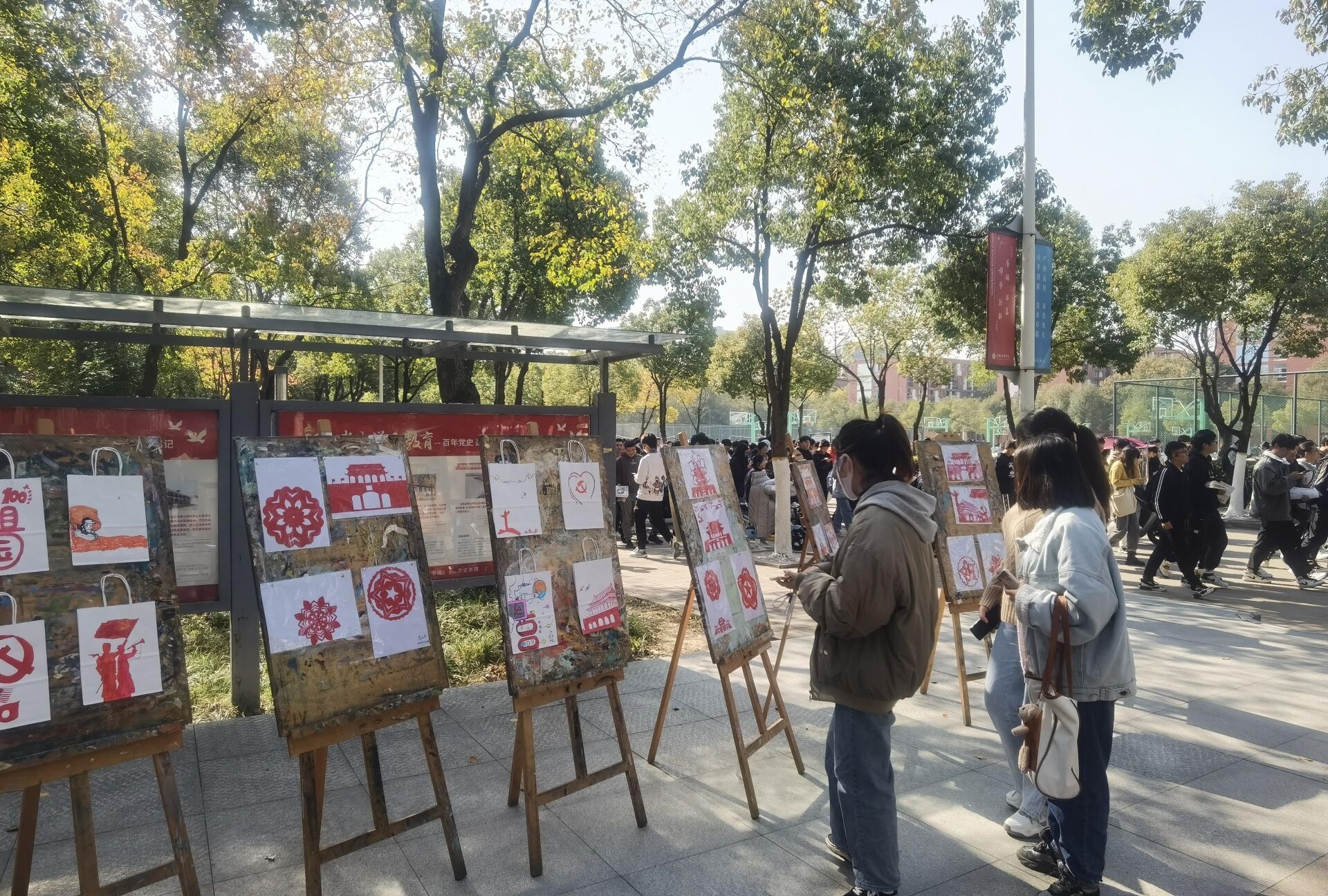 为弘扬优秀传统文化,结合专业优势,10月15日,党校班主任徐璐老师组织举办了红色文化主题剪纸活动。同学积极参与,以剪纸的方式表达对革命先烈的敬意。剪纸的创作过程十分复杂,但同学们都能细心、用心、耐心的对待,有些同学更是去重温了革命历史来挖掘剪纸素材,使作品能够凸显出中国的红色文化。就这样“红心永向党"、“井冈山的革命”、“伟人画像“等一系列具有革 命传统、弘扬人间正气的优秀作品,在同学们的一双巧手下诞生了。随着优秀作品的展示,本次活动也圆满落幕。