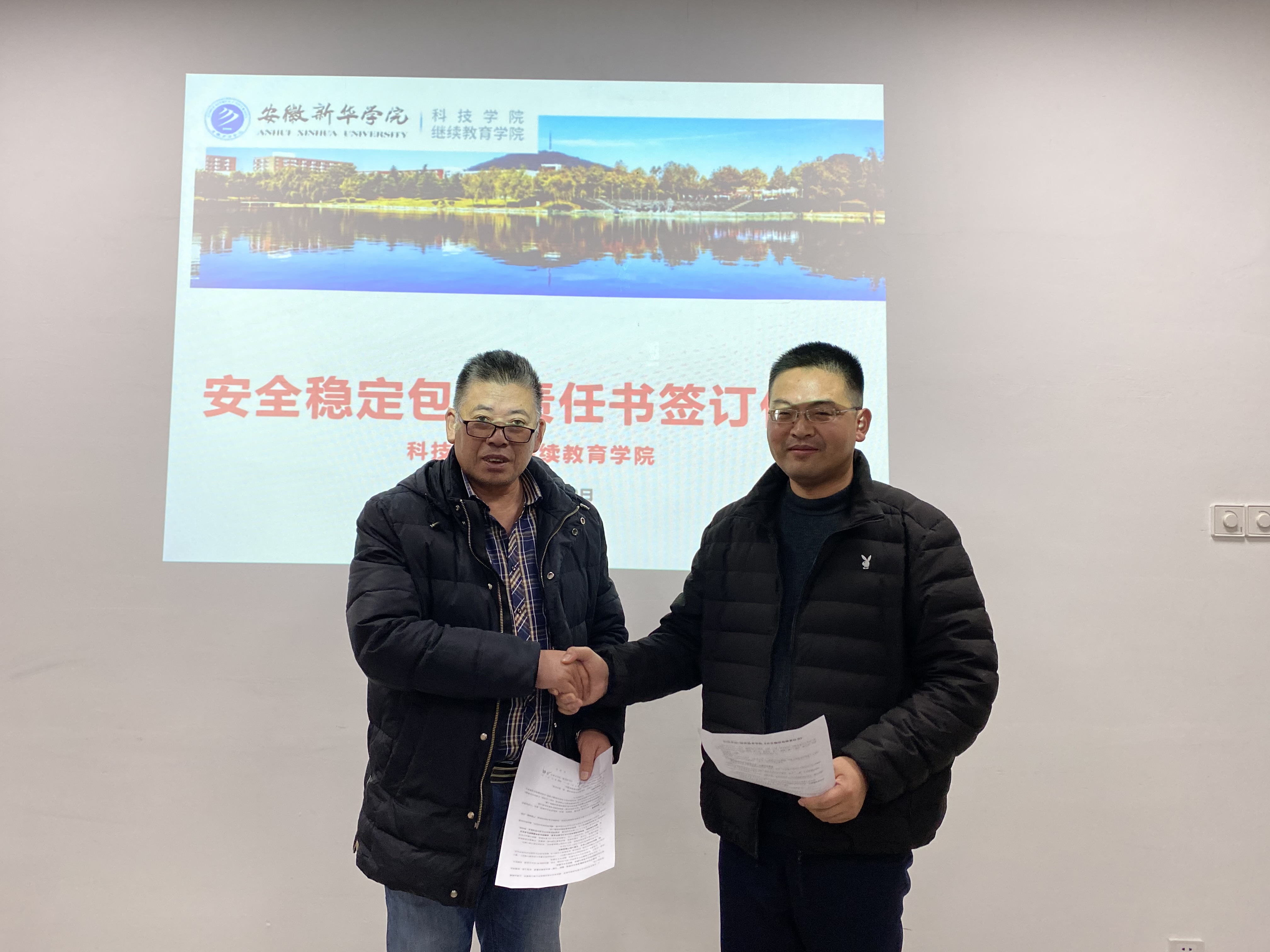 会后,学院领导与各校企合作项目负责人、辅导员代表分别签订安全稳定包保责任书。