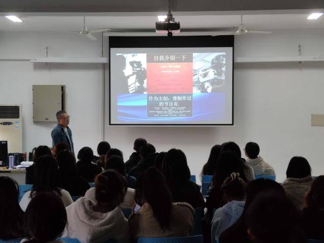 吴鹏怀导演,系安徽省火星传媒创始人,拥有十五年节目制作经验,贯通网综、台综、短视频前后期制作。在讲座中,吴鹏怀立足于行业特点,围绕逻辑思维、思考能力与专业技能等方面,讲述在行业内所具备的专业要求。通过自身的经验分享了在新媒体时代下现阶段所学习的方向、目的和要点。讲座中现场气氛活跃,学生们积极互动交流,吴鹏怀用丰富的行业经验为学生们解答专业问题。
