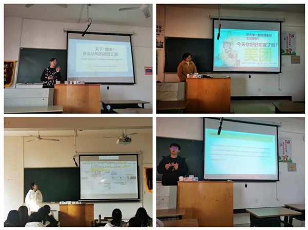 企业认知由驻校导师满春燕组织学生开展探索企业之旅,学生选择华为、阿里巴巴、字节跳动、腾讯、百度、美团、顺丰、拼多多等热门企业进行小组PPT展示。在汇报展示中,学生们不仅初步了解了企业的结构、经营模式,掌握了认知企业的基本方式方法,还锻炼了收集材料能力与分析问题能力。