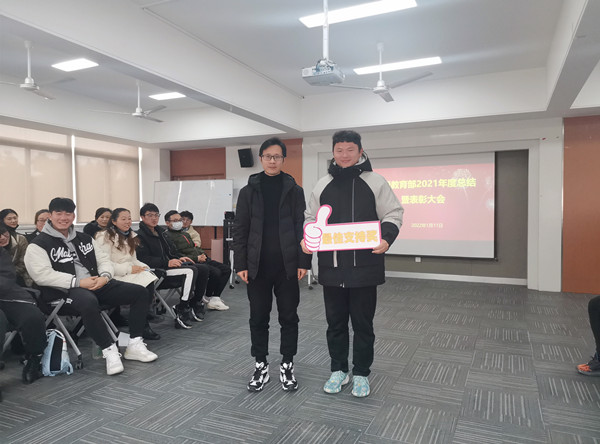 大会最后评选颁发科研之星、服务之星、课改之星、教学新星、突出贡献、优秀通讯员、最佳支持奖、最受欢迎教师和优秀指导教师9个奖项,对21名年度优秀员工进行表彰奖励。优秀员工代表王玲在发言中表示:“这份荣誉得益于领导的信任、鼓励和同事们的支持、帮助,这既是对工作的一种鞭策,更是一份沉甸甸的责任。在今后的工作中要更加严格要求自己,尽心尽职、努力工作,不断提高综合素质;戒骄戒躁、再接再厉,发扬团队精神,与同事们一起努力,取得更大进步。”