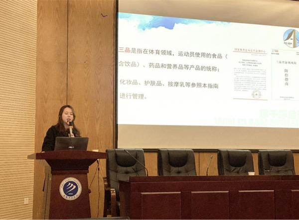 接着,沈紫璇针对“三品”的兴奋剂风险防控进行了详细的宣讲,带领全体人员学习了禁用清单等相关知识,结合案例进行分析,让运动员明确了自身反兴奋剂的责任和担当意识,有助于避免出现误服误用现象,让运动员牢固树立拿干净金牌的理念。