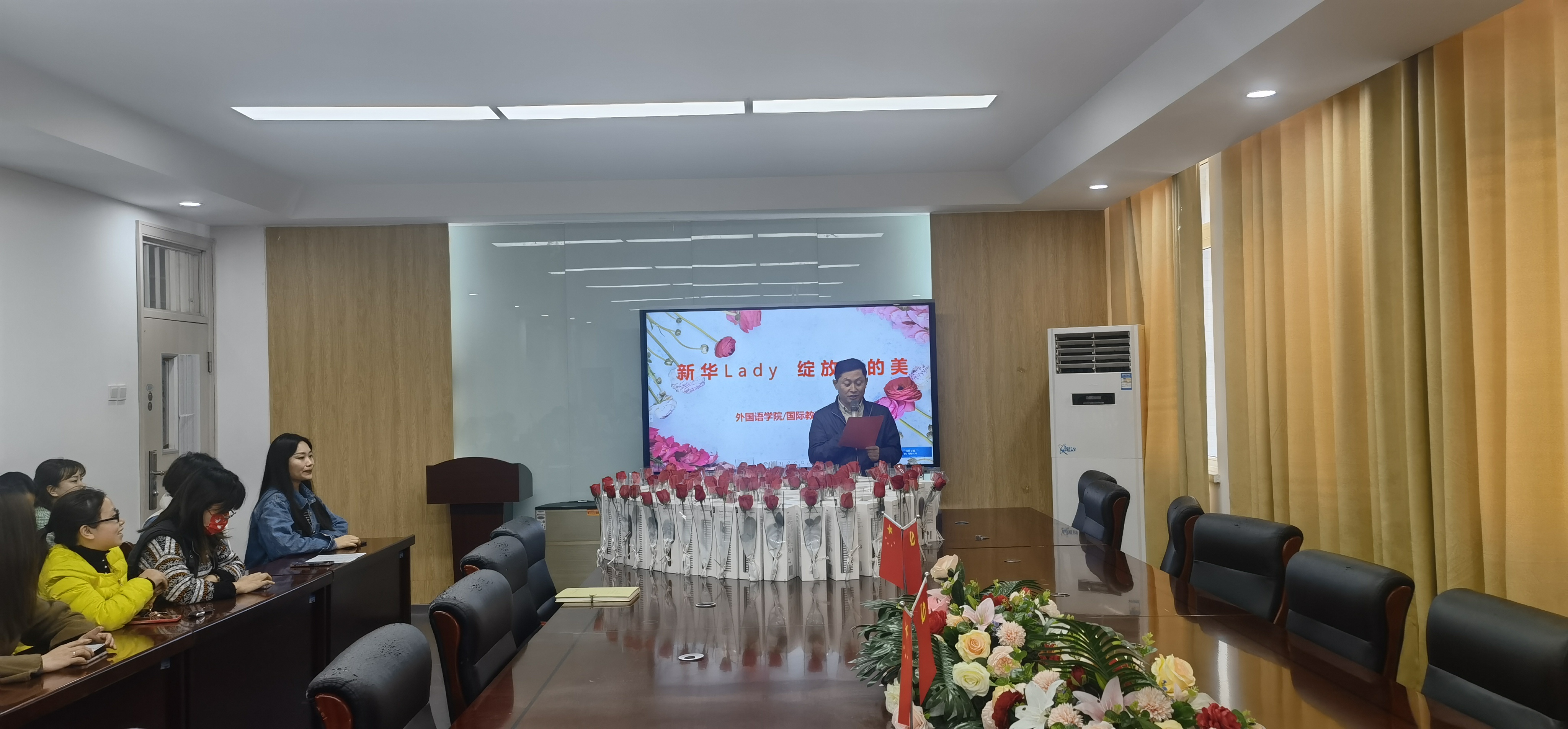 当天清晨,院里组织学生干部为每一名进入教学楼的女教师送上鲜花,为一天的工作传递了好心情。
