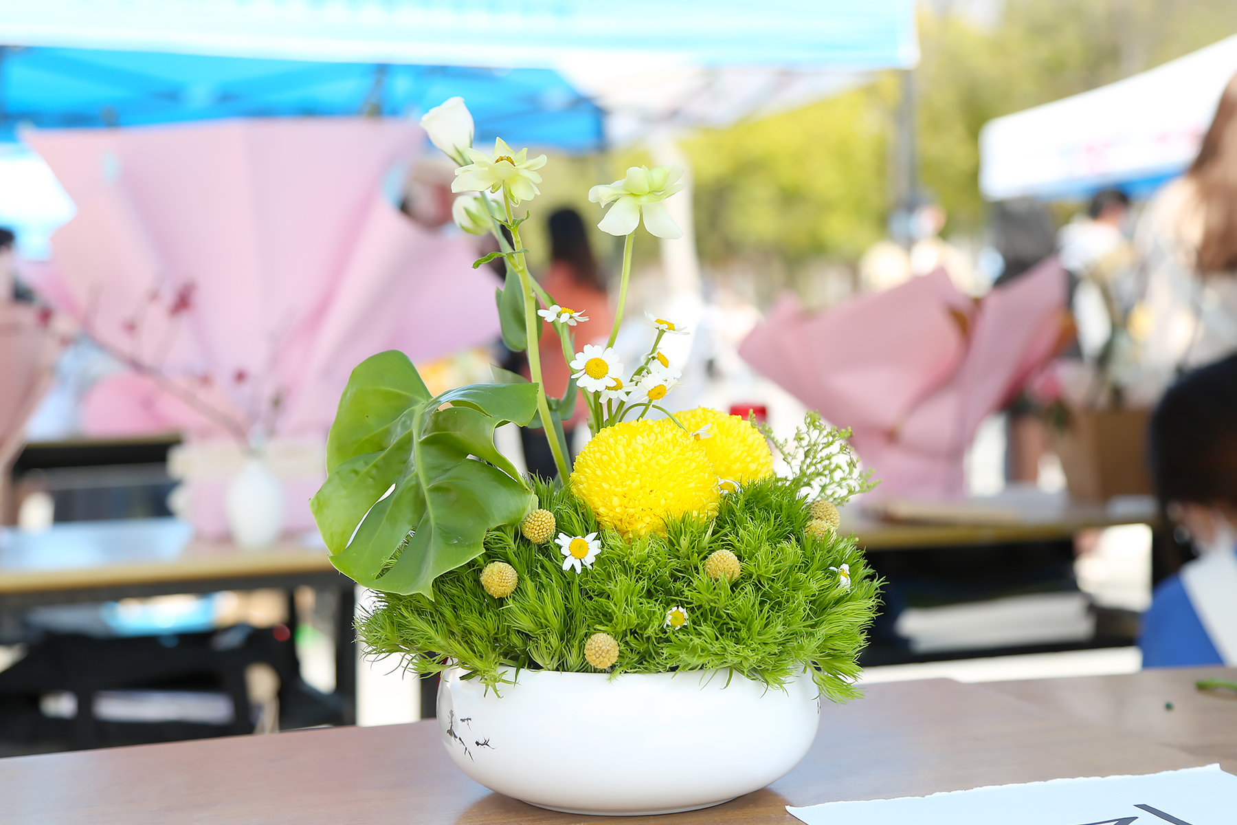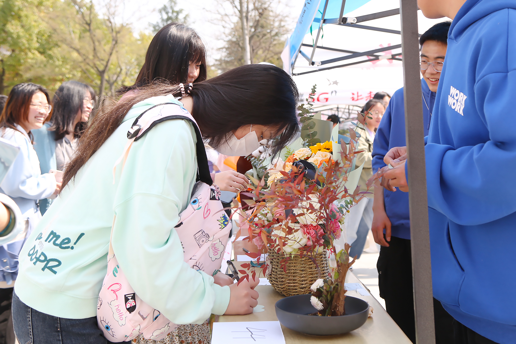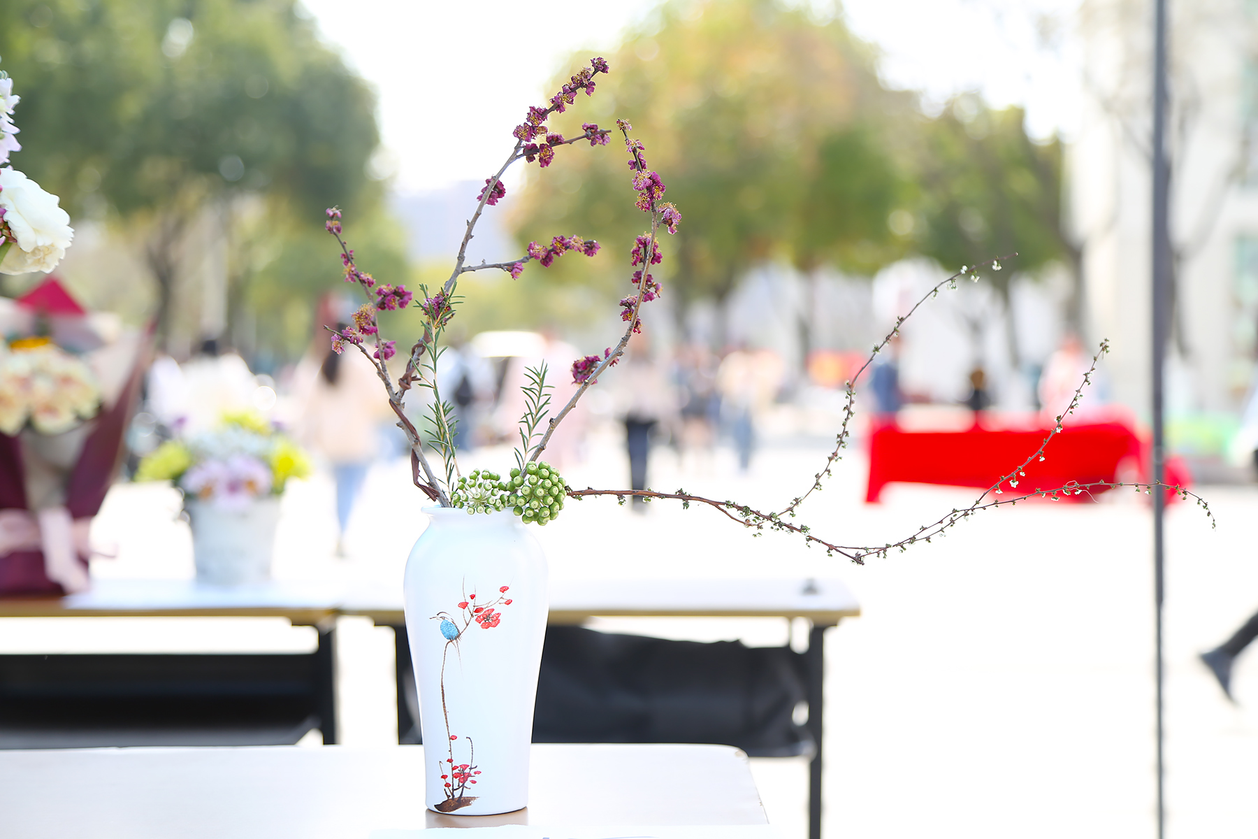本次展出包含西式插花、中式插花、创意插花等类型插花共计200余件。活动现场,制作者对参展作品进行介绍,参观者为自己喜爱的作品投票,最终投票结果计入课程考核成绩,这也为专业课程改革建设提供了一条参与度高、喜爱度广、真实性强的思路。活动现场,人头攒动,师生参与度很好,也给予了较好的评价。