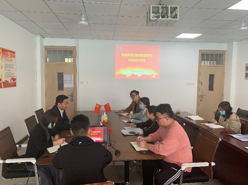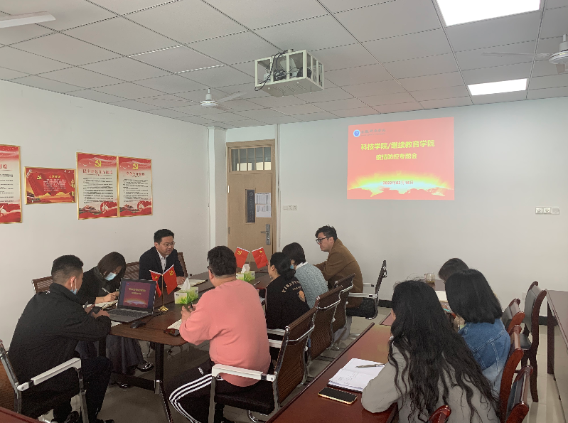 本网讯(通讯员:叶娟)为进一步加强学校疫情防控,扎实细致做好学生安全管理工作,3月15日上午,科技学院/继续教育学院组织召开疫情防控专题会,执行院长孙成伟及全体教职工参加次会议。会议由副院长朱向群主持。