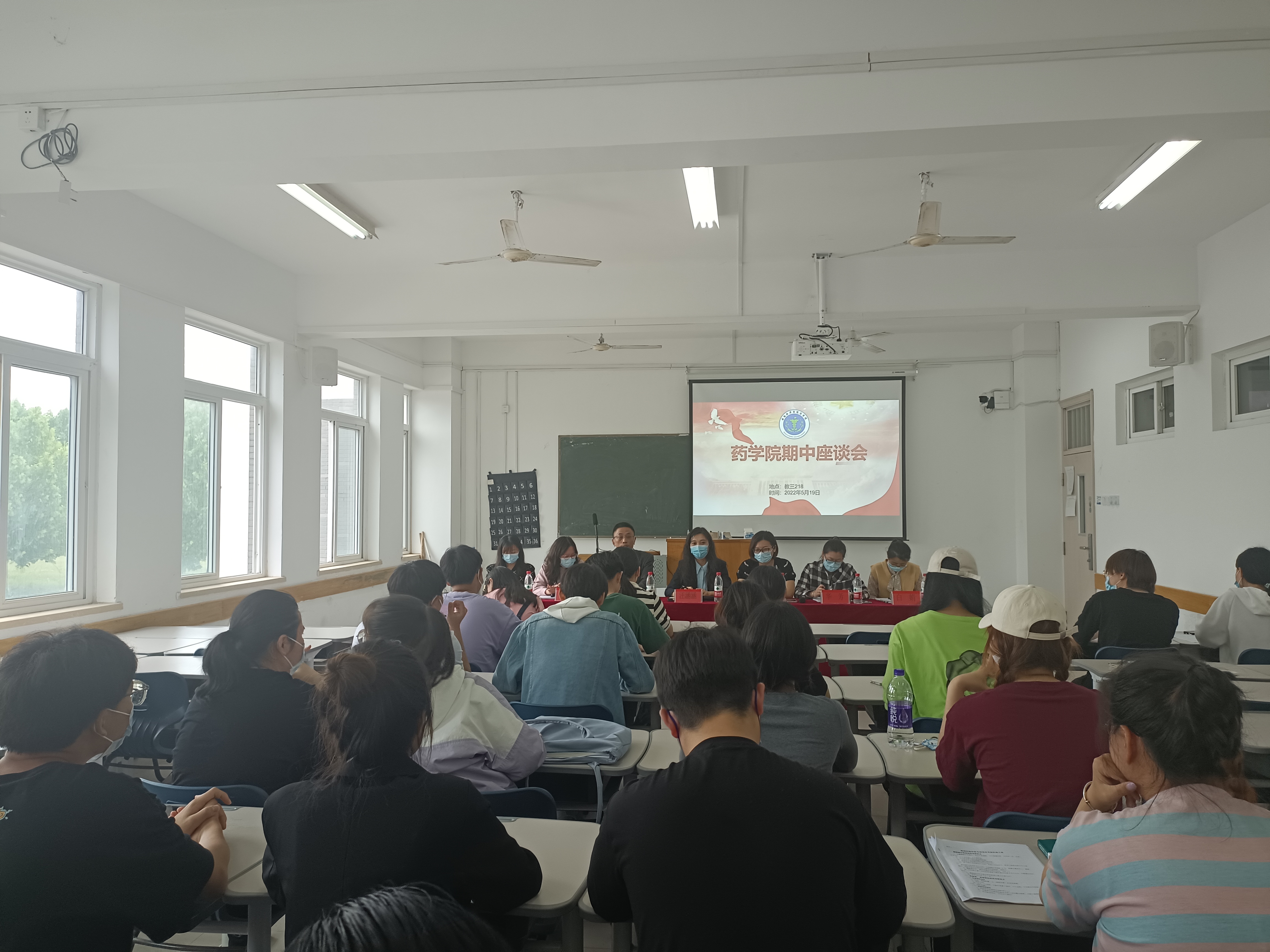 本网讯(通讯员:赵影 裴新瑞)为深入了解学生的日常生活,加强药学院后期教学过程管理。5月19日中午,药学院期中座谈会在教学三号楼218教室召开。出席本次会议的人员有药学院院长助理汪涵涵,药学院学管秘书兼行政秘书赵影,教学秘书李胜男,实验室主管李启照、系主任华芳、白娟、陆松侠、以及学生代表,会议由李启照主持。