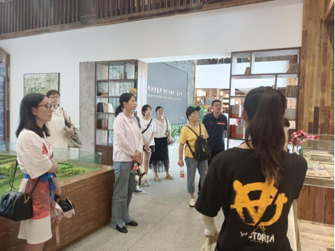 教职工跟随倪梦婷来到展示传统特色艺术的乡村艺术馆和活字印刷展示间。如今的马郢村,实现了从生产生活方式单一的村庄到文娱产业日趋成熟的田园综合体。咖啡馆、染坊、马场等文旅产业也是本次教职工党员团建的目的地之一。在参观结束后,中文系教授车晓勤提到:“马郢村旧貌换新颜的华丽转身,是当地人民劳动的果实,也是中华大地上脱贫攻坚战取得伟大胜利的一个缩影。”