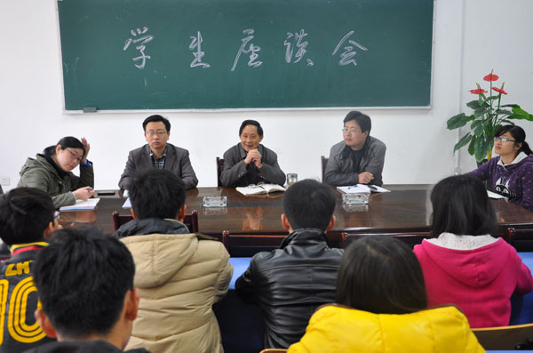 学生座谈会上,代表们畅所欲言。有的就专业和学科建设提出了自己的疑问和建议,有的对老师的教学方法谈了自己的想法,有的就学院的管理制度提出了自己的意见,还有的同学汇报了班级同学的学习情况和思想动向。三位院长悉心听取了同学们反映的问题和建议,并予以了详尽解答。方达宪对同学们的意见和建议表示感谢,并表示会尽快解决相关问题,努力为广大同学营造良好的学习环境。