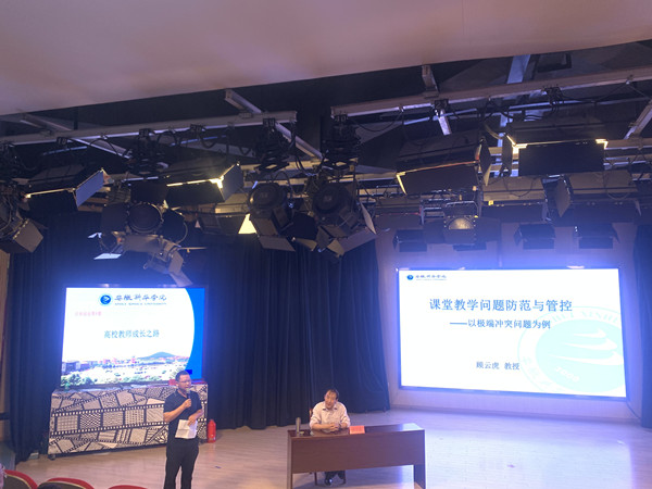 为进一步促进青年教师顺利完成课堂教学过程,顾云虎以“课堂教学问题防范与管控——以极端冲突问题为例”为主题,从“什么是课堂教学问题”、“课堂冲突问题分几个维度”、“如何看待课堂冲突问题”以及“课堂极端冲突问题怎么处理”四个方面进行分析,深入讨论了课堂冲突有效处理的方法,对青年教师在教学中遇到的问题提供了可行的解决策略。