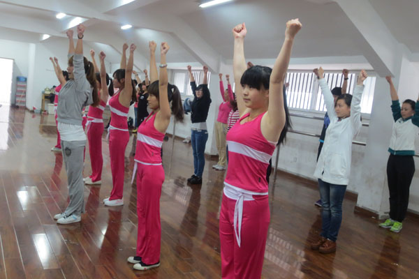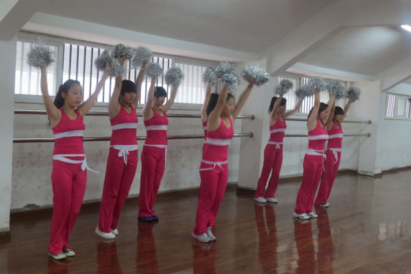 为在我省大中专学校广泛推广“校园啦啦操”,进一步推进学校 “阳光体育运动”的开展,安徽省学校体育卫生协会于2013年4月19日至21日在合肥市安徽农业大学体育馆举办啦啦操骨干教师培训班,伟德官网教师高新玲和赵春艳参加了培训,学习结束后她们就立即开始在伟德官网进行推广教学。赵春艳老师利用课余时间对学生进行了为期两周的培训。
