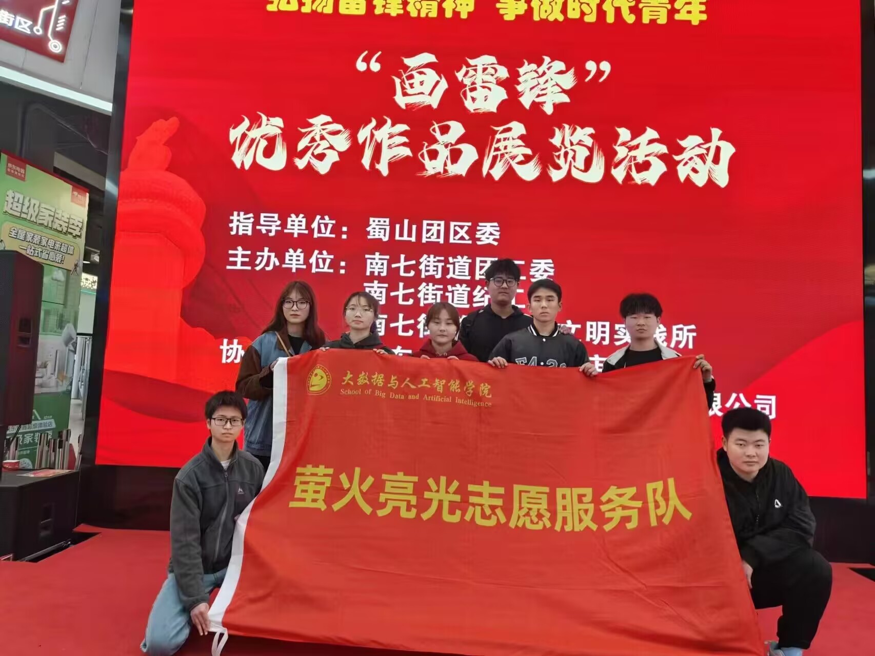 大数据与人工智能学院“萤火亮光”志愿服务团队积极参与南七街道团工委、南七街道纪工委、南七街道新时代文明实践站联合京东电器超级体验店和中国铁建大桥工程局集团有限公司共同组织开展的“笔尖跃动画雷锋 志愿青春绽光芒”——“画雷锋”系列文创优秀作品征集展览活动,同时,协助组织开展手绘“雷锋精神”主题帆布包和时尚胸章体验活动,更好地让雷锋精神融入日常、化作经常,让学雷锋精神在青少年中蔚然成风。